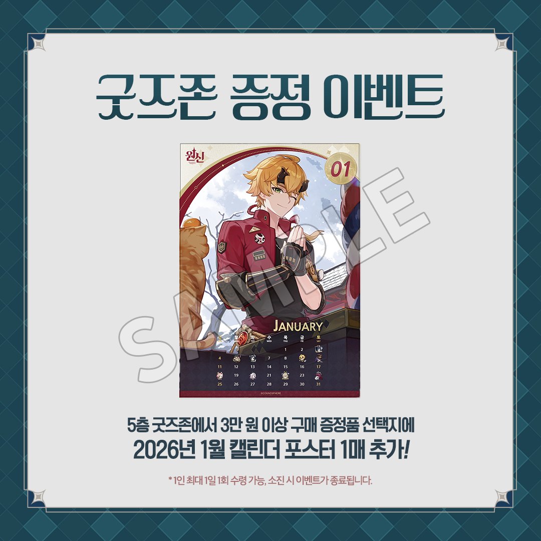 また、別途お知らせしたように、『原神PCラウンジ in Seoul』では「リオセスリ 2026年カレンダーポスター」がもらえる商品購入キャンペーンが2026年1月1日より開始されるとのこと。